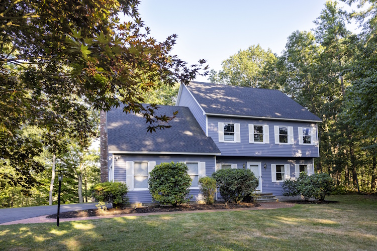 Our home is on a peaceful cul-de-sac in a suburban neighborhood in Massachusetts with over an acre of yard space – perfect for year-round activities like building snowmen, playing catch, or roasting marshmallows by the firepit. We have a large pond and protected forest behind our house, which we love for hiking and the occasional beaver sighting!
