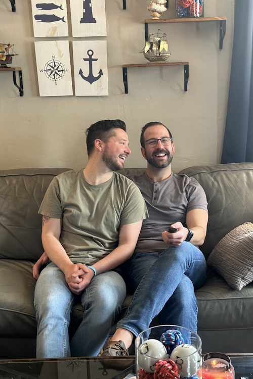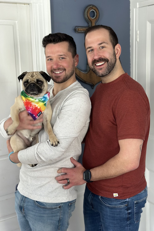 We fell in love with our house the moment we saw it. It had that instant “home” feeling for us. Brandon’s favorite room is the living room, it’s the perfect place to relax and read a book. Gary of course loves the kitchen, fully equipped with a multitude of kitchen gadgets and cookbooks. As we both work from home, we each have our own office space as well. We also have a large fenced-in backyard – we spend a lot of time outside playing with our dog, entertaining friends and family, or simply relaxing on a sunny day.