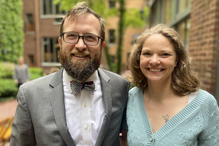We weathered COVID together, supporting each other through the most difficult parts of the pandemic. In December 2020, Kevin took a new job a few hours north of Boston, in Portland, ME. Megan followed, spending holidays and half of the week in Portland with Kevin and returning to Boston a few days each week to teach. We welcomed our dog, Percy, into our lives and enjoyed exploring our new home city and state with him, via long walks and backpacking trips. In October 2021, we were married in a small outdoor ceremony in Acadia, a National Park on the coast of Maine, surrounded by our closest friends and family.