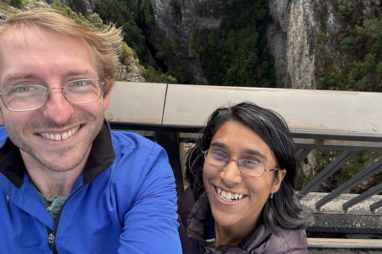 Lekha met Hayden in college, and it was love at first sight. Before then, she’d never been interested in dating, but within our first month together, we knew that we wanted to marry each other. A few years later, we did! Since then, we’ve grown together through a mutual love of adventure—making restaurant-quality biscuits, biking all over Massachusetts, and scuba diving in the Great Barrier Reef.